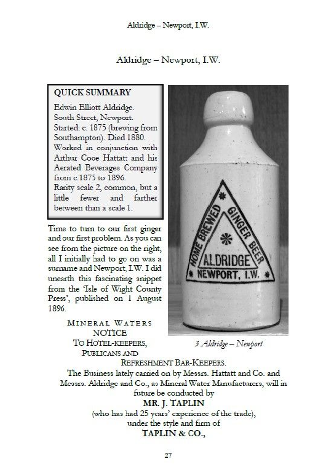 This book examines the history of the people named on ginger beer and stout stoneware bottles from the Isle of Wight. The evidence comes from genealogical research, newspapers, local records and tales told by other collectors, historians or family members. The work is an exploration of the stories behind the names. They are not limited solely to ginger beer styles, as the list includes some slightly larger skittle or stout bottles and one whisky jar. I should explain that this is not a book for reading from cover to cover; it is a reference book for ‘dipping’. If you wish to look at the history of a merchant, a brewer or similar, then this is the book for you. For any collector or digger, finding a new bottle or stoneware item in a junk shop, auction, or dig brings a great deal of satisfaction and pleasure. It is truly discovering the Island Treasures.